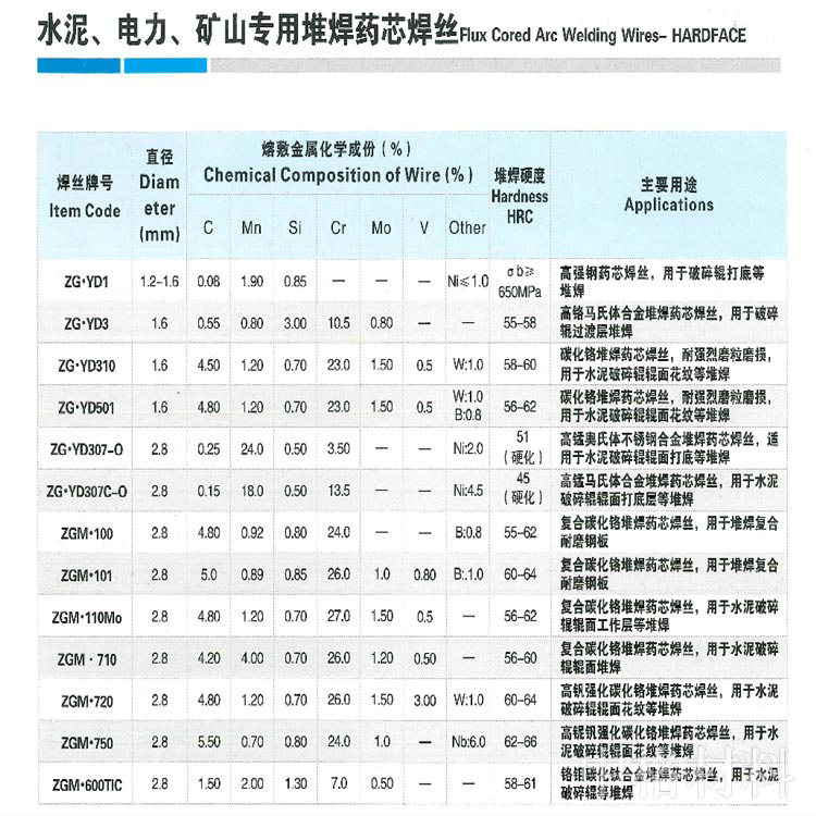 產品名稱:水泥、電力、礦山專用堆焊藥芯焊絲